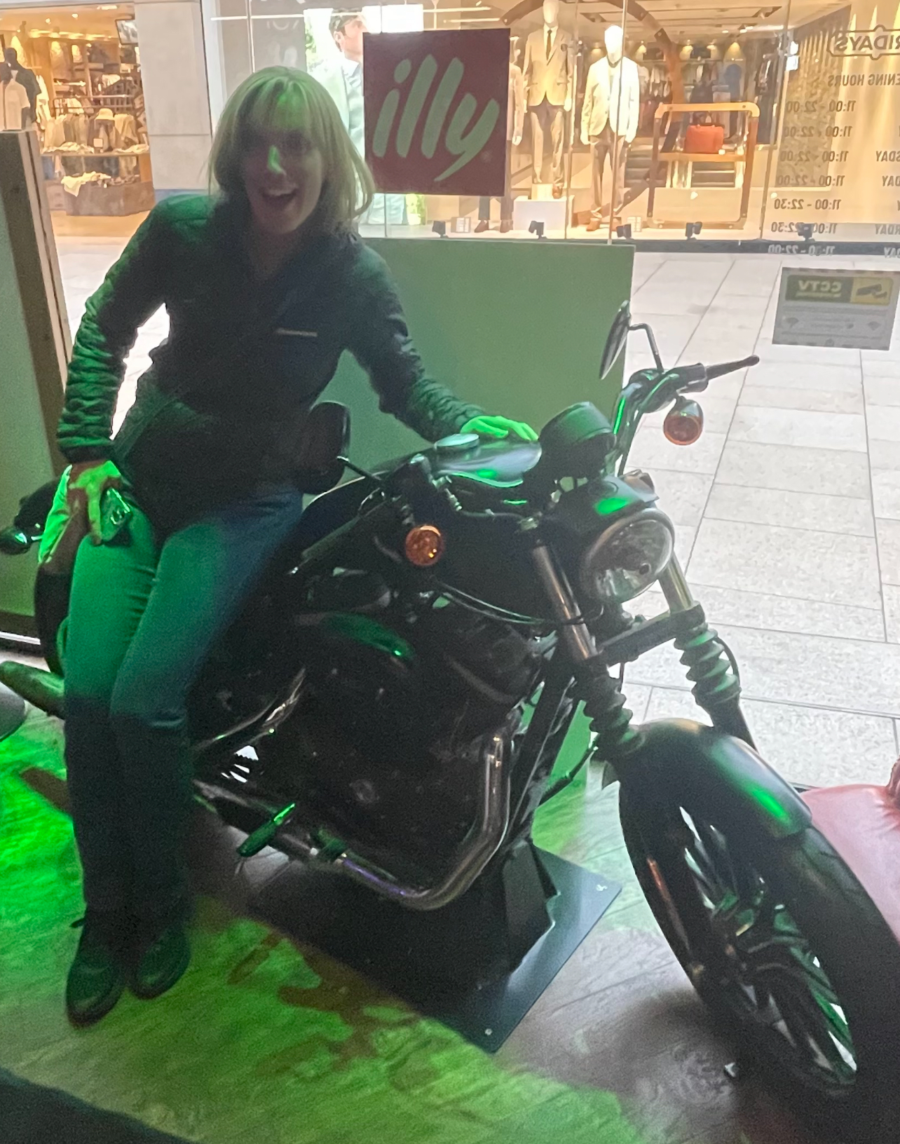 I was also really impressed with Leeds and the new shopping centre there in the centre of town, and we headed off for something to eat there (where my sit posed on the Harley in the window) and had booked to stay in the Travelodge there.